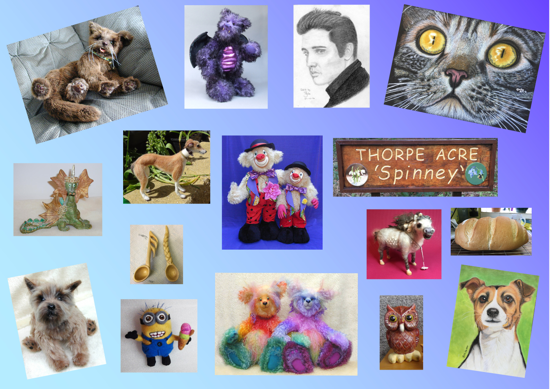 I have spent my life making things, whether that's a soft sculpted animal, a 3d creation by Needlefelting wool, a website, a wood carving, a clay figurine, a written piece of work, jewellery, photos, videos, stories, poems or simply a loaf of bread or something else to eat. I rarely follow a recipe or pattern unless I am commissioned to recreate one of my designs so most of what I produce is from my own design or recipe. Some of my 3D work is shown in this picture and you can see more on my Woodland Teddies website using the link at the bottom of this page, which will open my other website in a new window.