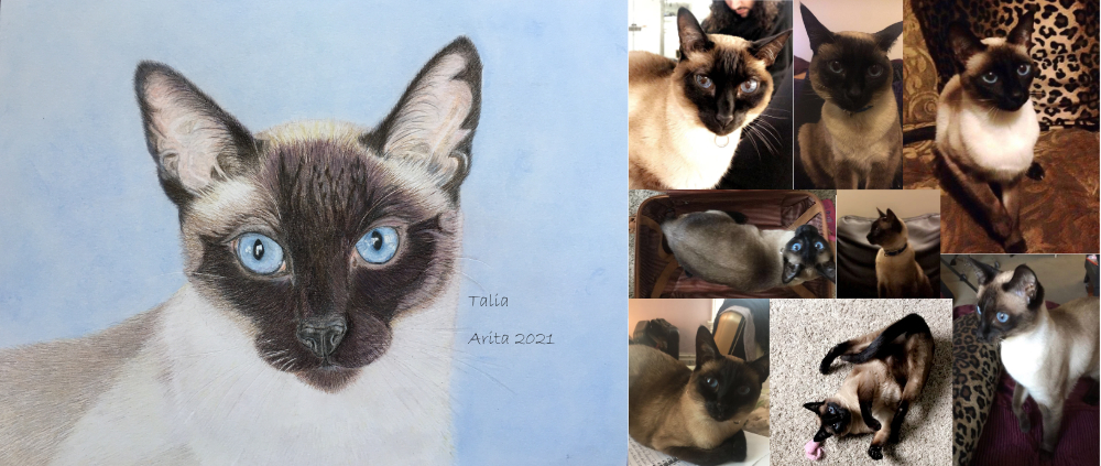 It is also possible that you may have several photos of your loved one but nothing you particularly like, or photos you like but that do not show the colours correctly, or there may be other problems. If that is the case, it is possible to produce an entirely new portrait by building up a new image working from a group of photos and then talking to you so that I make the appropriate corrections, as shown in this cat portrait to the side so, if you are in this position, please call so we can discuss your specific requirements.